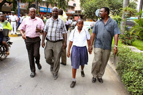 | Maofisa Usalama wakimpeleka mtoto huyo kituo cha Polisi ili kuweza kupata maelezo zaidi na kusubiri wazazi wake waende kumtoa. |